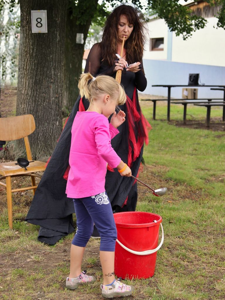 Děti na trase plné soutěží, která vedla kolem fotbalového hřiště, mohly potkat kouzelnou vílu, bílou paní, čarodějnice, čaroděje Gargamela, kouzelníka. Po projití všech disciplín děti dostaly balíček sladkostí a drobností.
