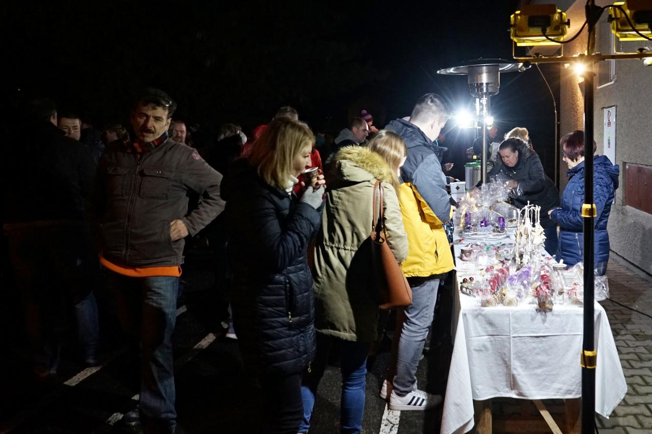 Jako v minulých letech jste si zde mohli zakoupit pro zahřátí svařák, cukroví, pro děti byl připraven čaj. K zakoupení byly výrobky, které vyrobila děvčata z kulturní komise, maminky dětí ze školky a také paní učitelky. Téměř každý si domů odnesl vánoční dekorace, ozdoby, adventní věnce nebo vánoční svícny.